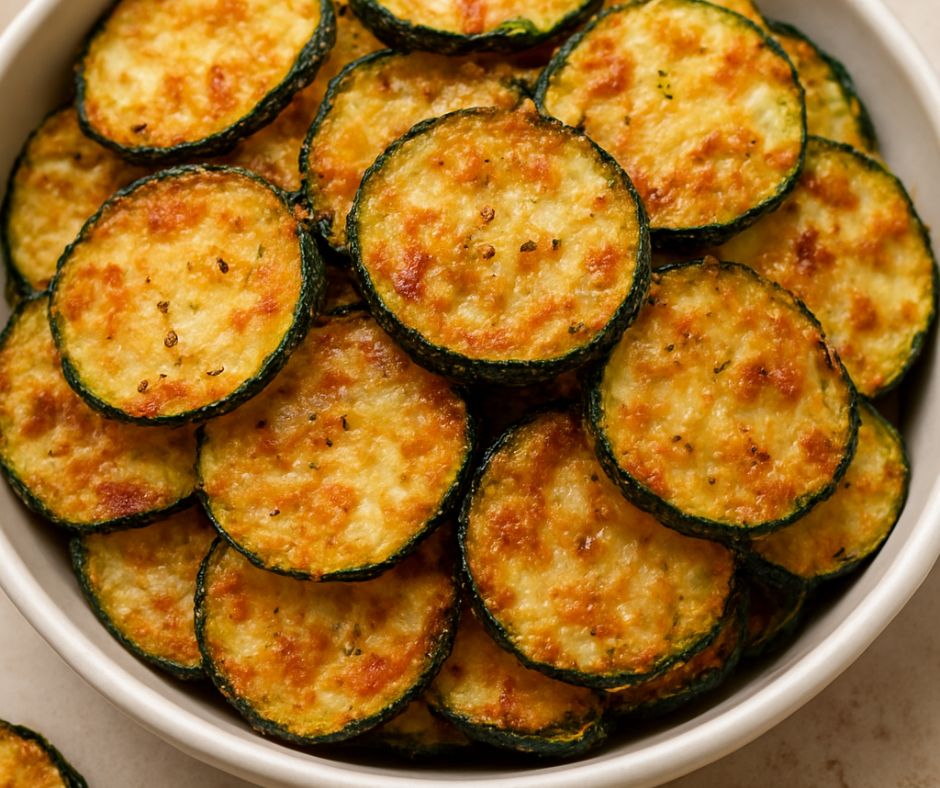 Thinly sliced zucchini baked until crispy, coated with parmesan cheese. Perfect for movie nights or guilt-free snacking.